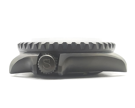 Matt stainless steel watch case.
